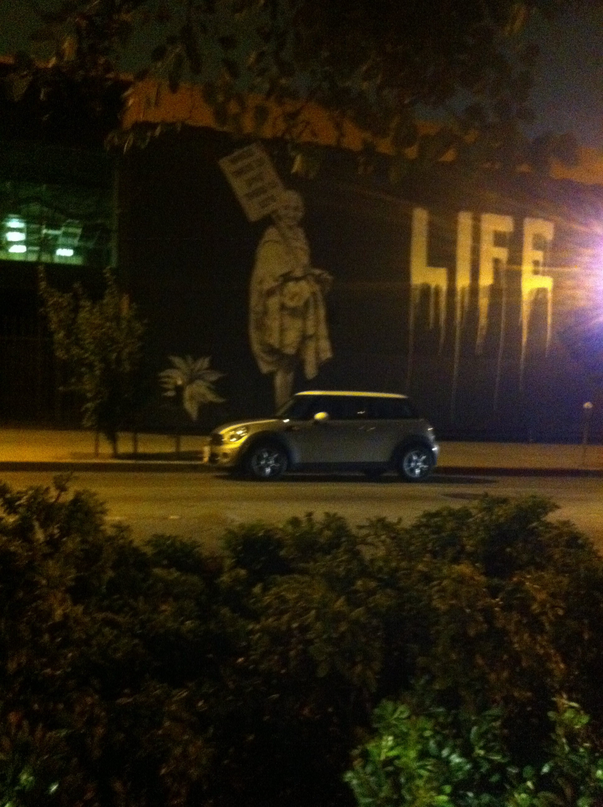 Cruising through Hollywood late Tuesday night, running errands, this mural pictured here catches my eye. What a great idea. Life is beautiful, really it is. The message rings true in more ways than one, and the symbol of it painted on the wall is expansive and beautiful in its own right.