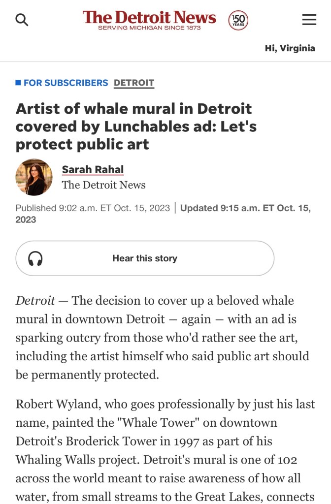 Wyland, Detroit’s whale mural artist, calls for protection of public art.