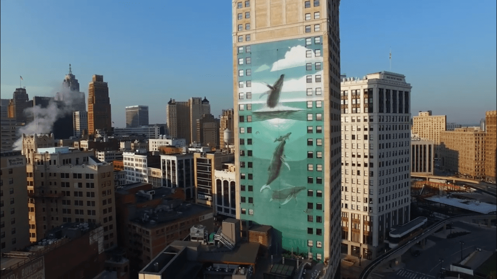Whale mural on Detroit’s Broderick Tower resurfaces after storm damage