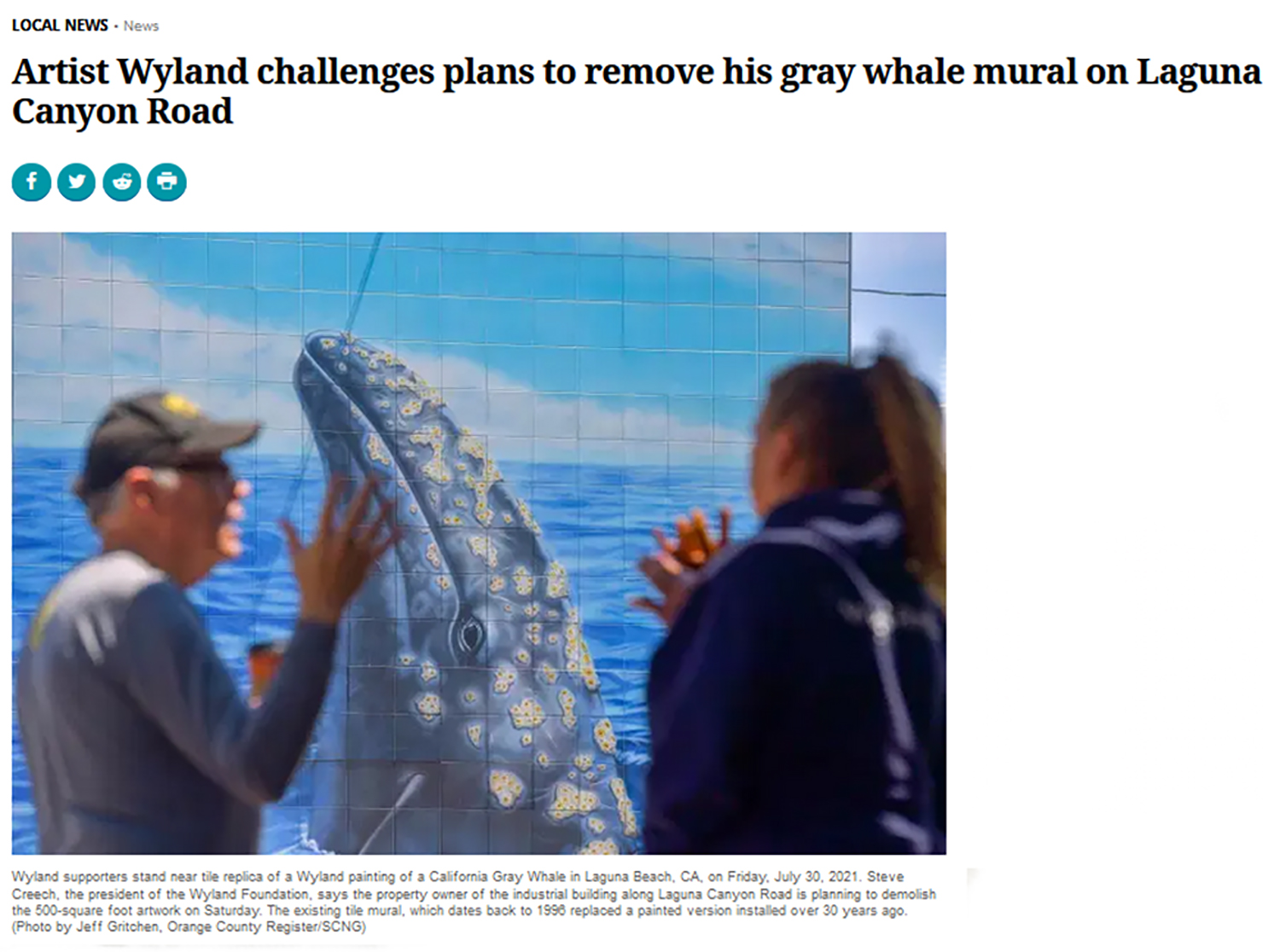 Wyland argues that covering his art is a violation of the Visual Artists Rights Act of 1990, or VARA. VARA grants artists the right to claim their work and prevent others from “any intentional distortion, mutilation, or other modification of that work which would be prejudicial to his or her honor or reputation.” Sarah Rahal writes for The Detroit News.