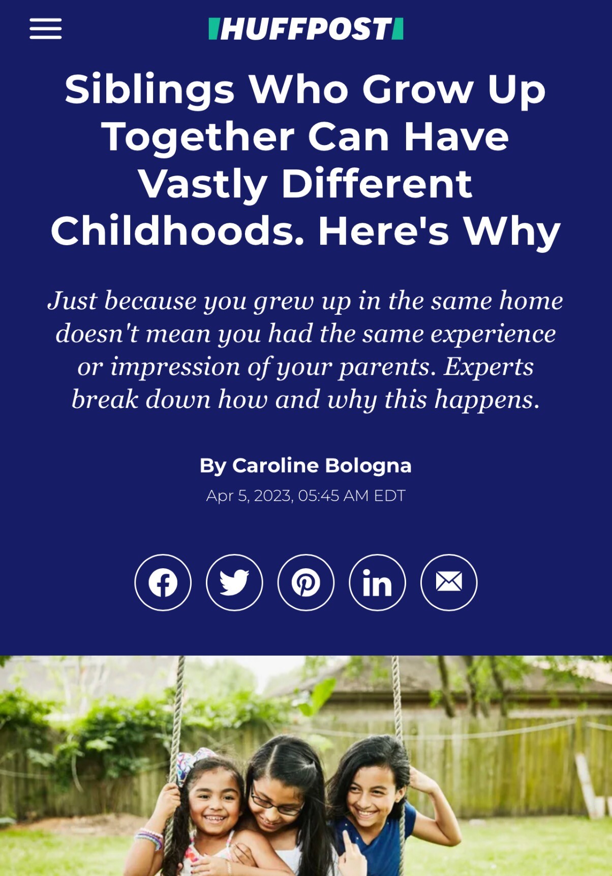 “Find other outlets to process your emotions, like a trusted friend, family member or therapist. Take stock of the people in your life who can offer support when you’re feeling mentally overwhelmed or physically ill.” writes about parentification with advice from Dr. Jenny Yip at HuffPost.