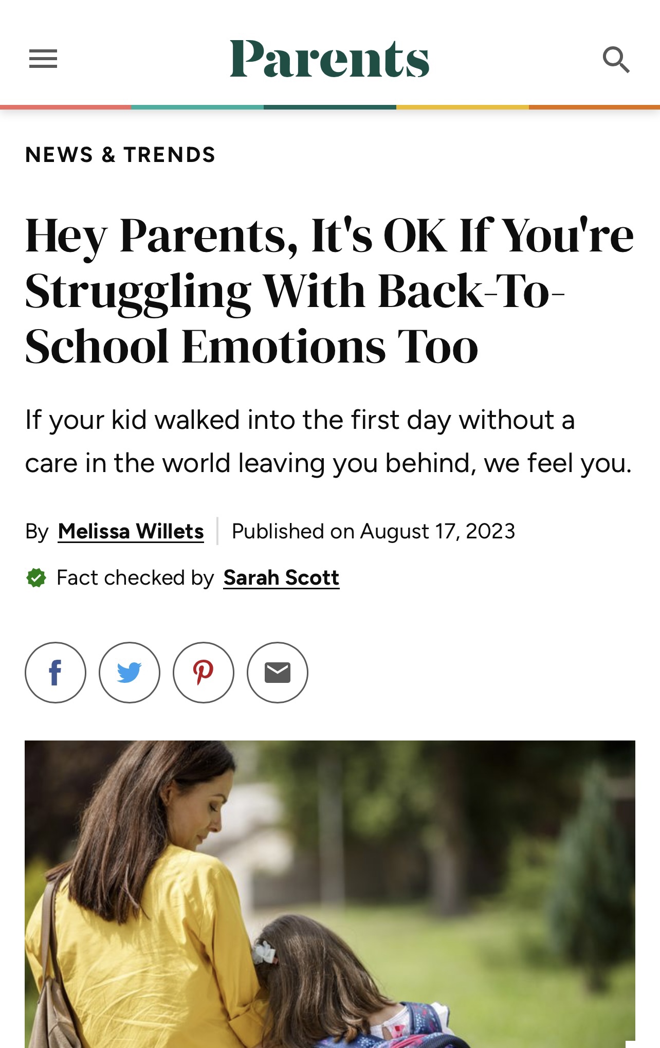 Clinical psychologist Jenny Yip, PsyD, ABPP of Los Angeles-based Renewed Freedom Center says “If your children feel confident in their ability to get through their first day of school then it will calm your own anxiety and conflicted emotions,” she tells Parents. “The goal is to model calm behavior for your child, which of course we all strive for.”